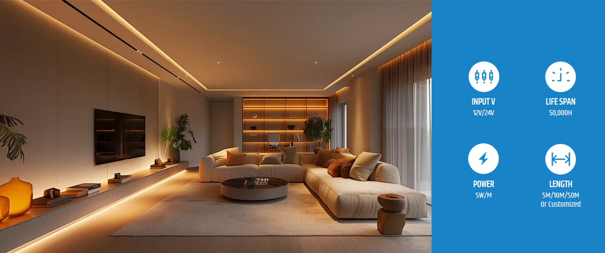 Performance-wise, these strips excel in delivering high color fidelity (Ra>90) and superior efficiency, ensuring vibrant and true-to-life colors. The long operational life of up to 50,000 hours makes them a low-maintenance choice, minimizing replacement frequency. Flexible to use and install, the strips operate smoothly on popular low-voltage systems (DC12V or DC24V), offering safe and energy-efficient lighting solutions. For users, this means hassle-free ambience creation that balances aesthetics with practicality.