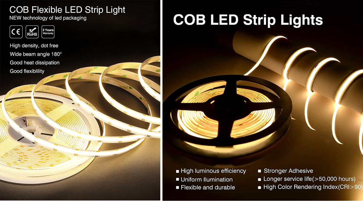 These Led Strip Light - COB LED Flexible Strip Lights transform various spaces by delivering subtle illumination for retail shelves, art displays, or under-cabinet areas. Their seamless glow suits environments where spotlighting details matter—jewelry showcases, architectural coves, or window displays—providing a consistent, attractive light source to enhance colors and textures. Ideal for residential and commercial settings alike, they integrate easily with standard lighting systems to offer user-friendly control and aesthetic flexibility.