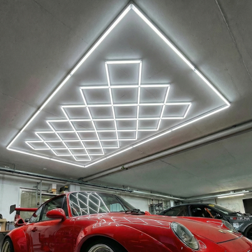 Our hexagon LED lights features a core design highlight of the honeycomb geometric structure. The PC+PVC diffuser panel combination not only delivers a high luminous efficacy , but also ensures that light spreads evenly across the vehicle surface like flowing water. Even the finest scratches during polishing in auto repair shops or edge bubbles during film application in car detailing shop are clearly visible under its illumination.