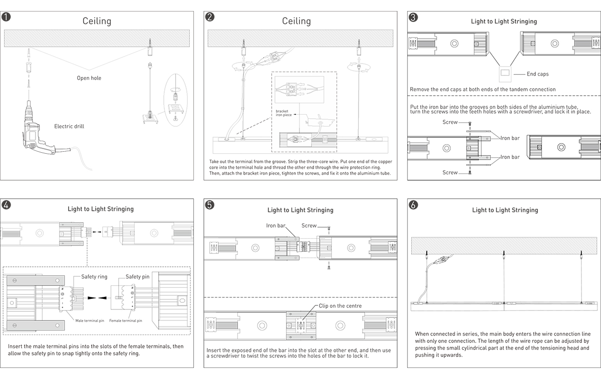 Two *1m hoisting line(custom length available), two connection clips and screws.
