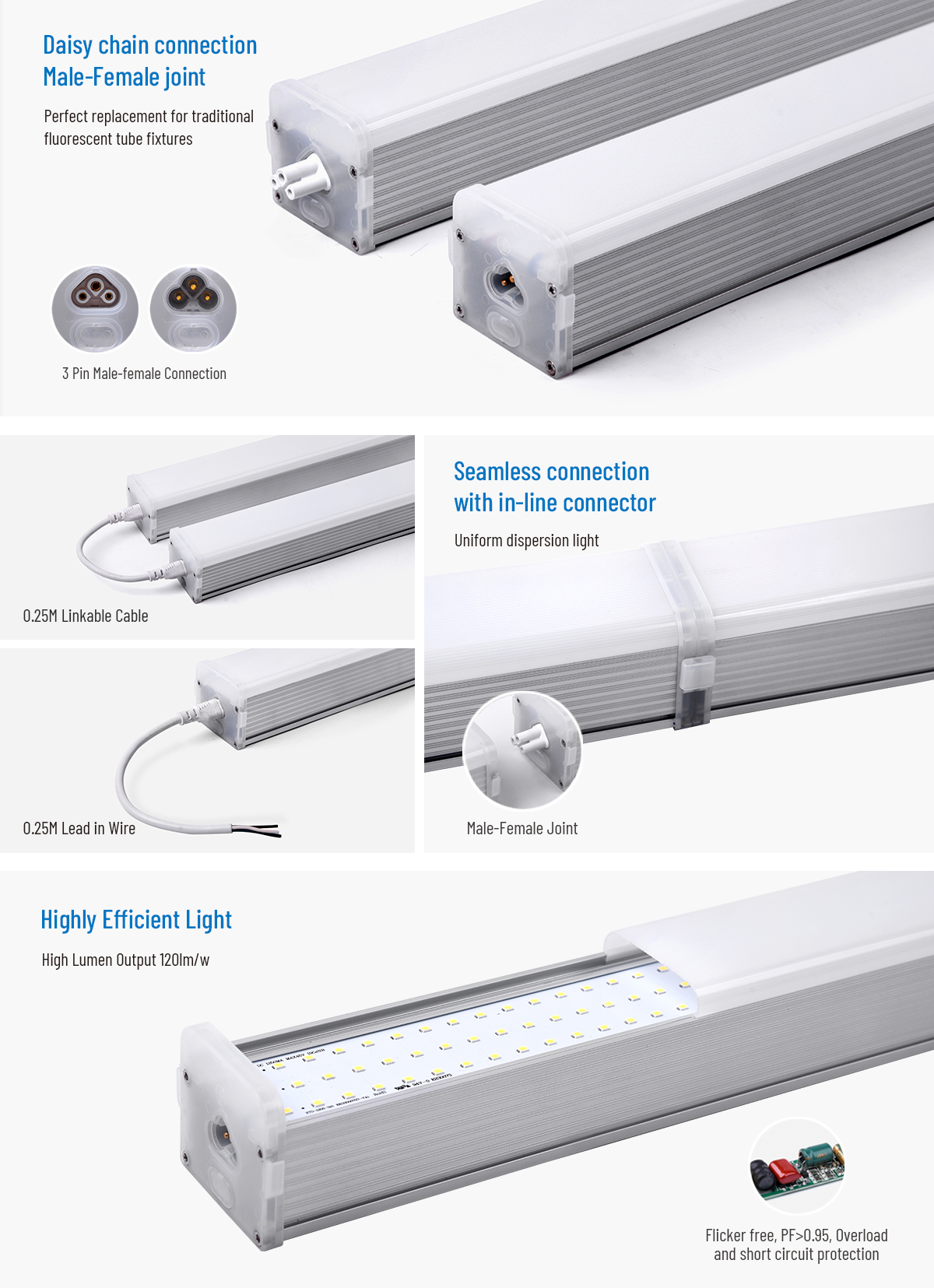 The Led Linear Strip Light features a durable combination of PC (polycarbonate) and aluminum housing. This mix ensures long-lasting performance, impact resistance, and excellent heat dissipation to maintain reliability in commercial and industrial environments.