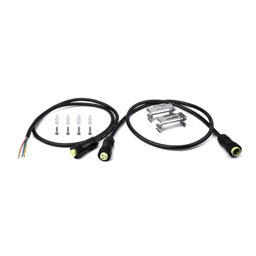 One 100cm power cord, one 100cm connection cable, one small connector, clips and screws...