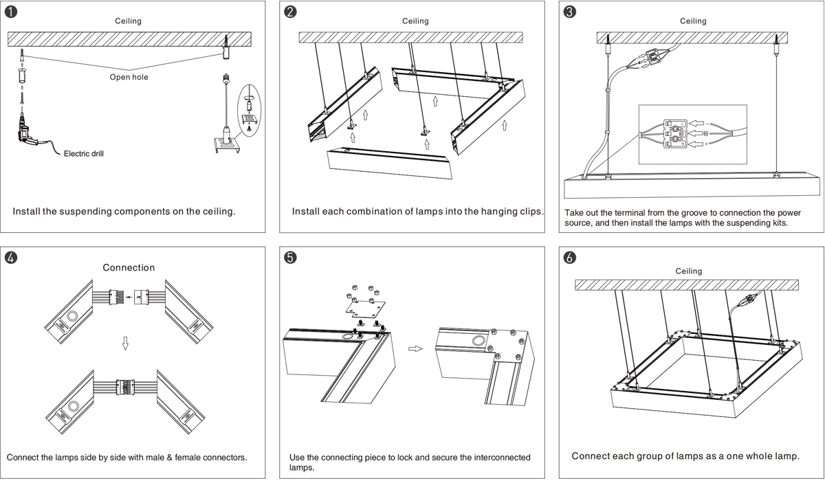 Convenience and Versatility: This light fixture is designed with a dimmable feature, allowing users to adjust the brightness to suit their needs, and can be easily installed using a suspended mounting system, making it a convenient and versatile addition to any indoor space, including those with varying lighting requirements, such as homes, offices, or public areas.