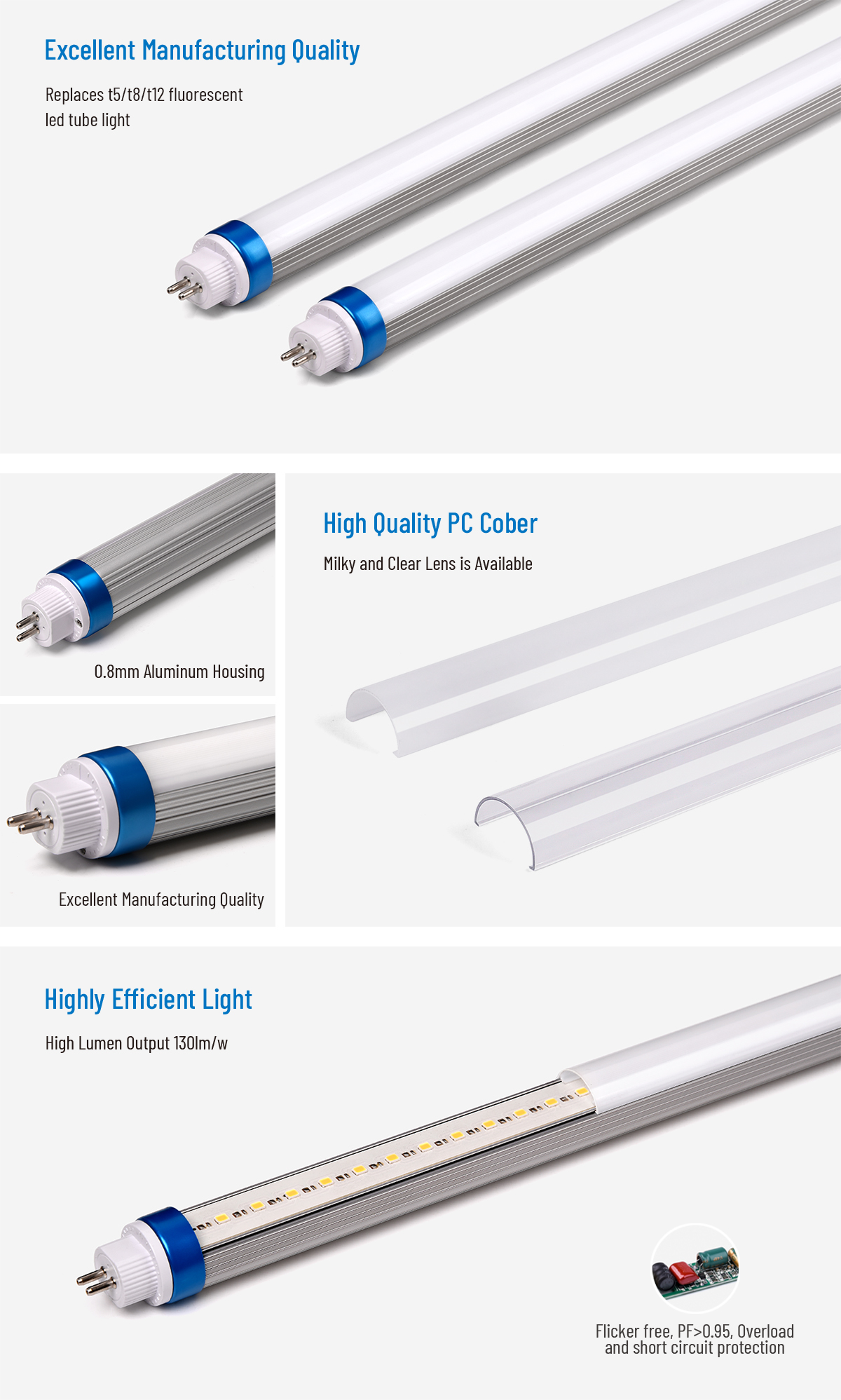 T5 LED Tube is designed to look like and replace traditional fluorescent tube,which has a longer lifespan and superior efficiency. It offers easy installation and enables significant cost savings, making it an ideal choice for upgrading offices, warehouses, and other commercial spaces into high-performance, energy-saving lighting system.