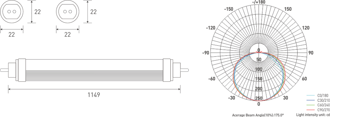 ● Product Line Drawing (Size:mm) ● Light Distribution Curve