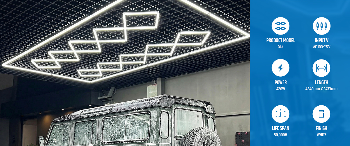 Our hexagon LED lights features a core design highlight of the honeycomb geometric structure. The PC+PVC diffuser panel combination not only delivers a high luminous efficacy , but also ensures that light spreads evenly across the vehicle surface like flowing water. Even the finest scratches during polishing in auto repair shops or edge bubbles during film application in car detailing shop are clearly visible under its illumination.